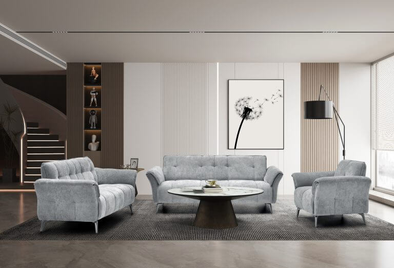 The Amalfi sofa, featuring stunning grey fabric, exudes both elegance and style. Crafted with luxurious materials, it offers unparalleled comfort and support, making it the perfect addition to any living space in need of a touch of sophistication.