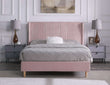 Crafted to accommodate a king-sized mattress, this bed is an ideal choice for those seeking a restful night's sleep.. The stylish pink velvet fabric continues to look good year after year. This bed is made up of high quality materials and components, making it ideal for any bedroom. This easy-to-assemble bed flaunts a modern design with wooden metal legs. Enhancing the look of any bedroom, the Amelia 5' King Bed - Pink Velvet Fabric is ideal for those seeking an aesthetically pleasing addition.