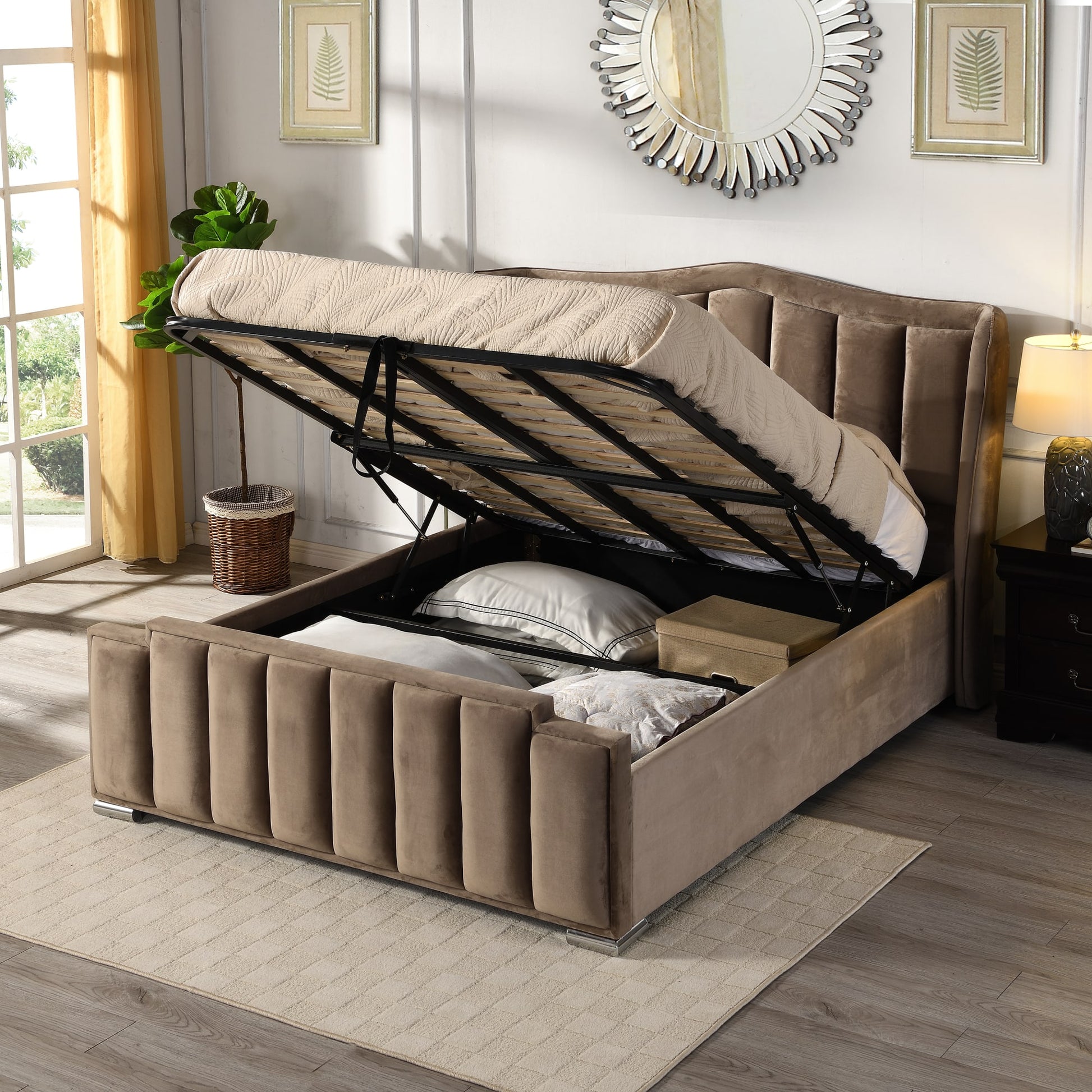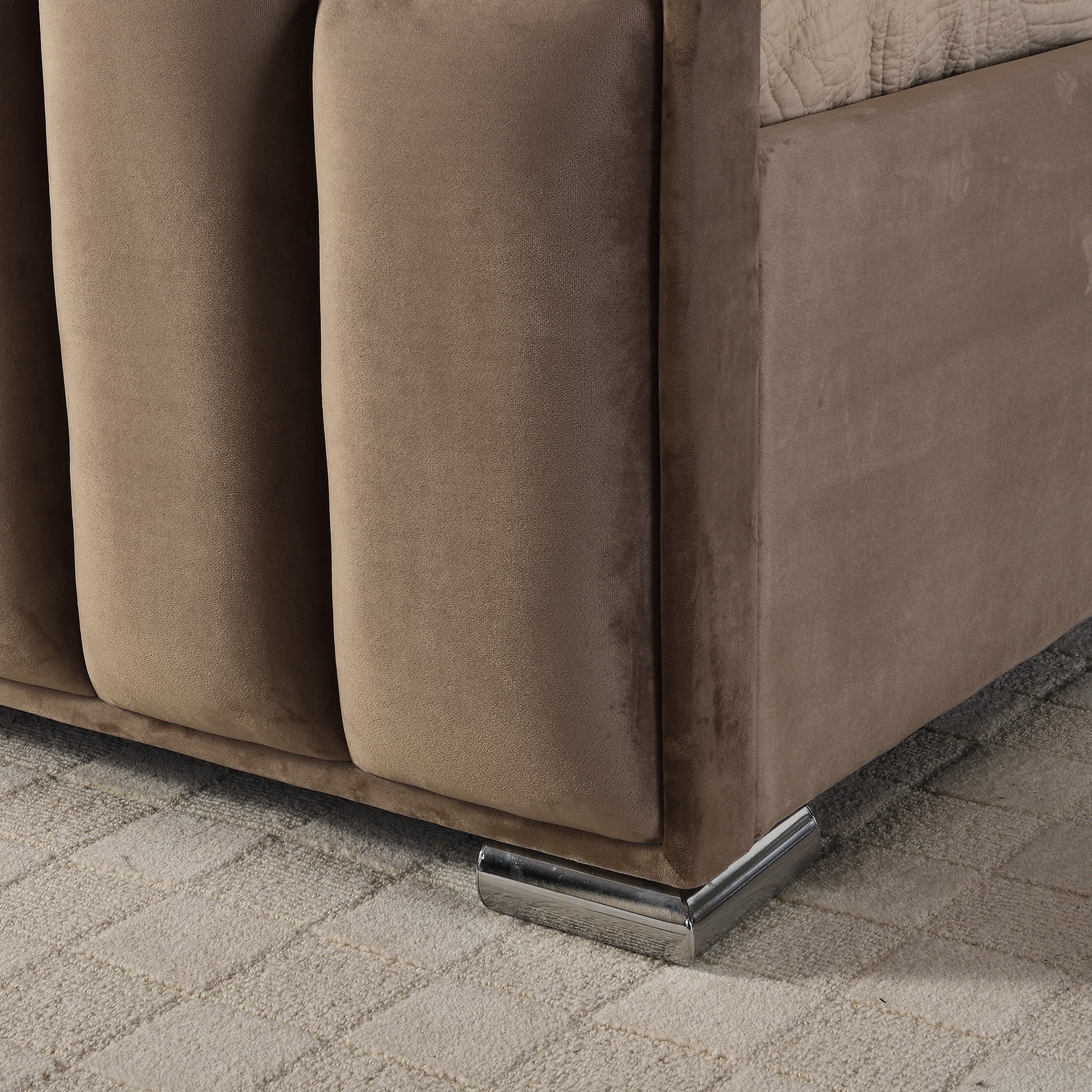 The Clare Gas-Lift bed is covered in a luxury velvet finish. This mink bed has an impressive Victorian structure due to its unique winged sides. There is eye-catching lined detail on both the headboard and textile footboard. The Clare ottoman bed has wonderful inner storage. To avail of the Gas-Lift feature, users simply pull the handle located at the footboard upwards. This modern bed stands on four sturdy metallic feet, offering excellent support.