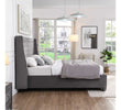 The Jersey bed is coated in a soft velvet fabric. This dark-grey bedframe has button-back detail on both the headboard and footboard, as well as a diamond pattern aesthetic. There are two sturdy wings on this bed, highlighting the eye-catching appearance of this bedframe, making it the centrepiece of any bedroom. The Jersey bed stands on two metallic feet, giving this modern bed a contemporary aesthetic.