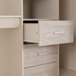 - Integrated Desk and Storage: Features a built-in desk, shelves, drawers, and a hanging rail to keep essentials organized and accessible.