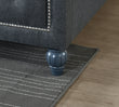 The Taylor linen bed is covered in a luxury grey fabric. This traditional bedframe has a button-back design on both the headboard and footboard, as well as metallic stud detail, the combination complimenting each other to give this grey bed a classy aesthetic. The Taylor bedframe stands on four sturdy wooden feet, each individually carved and painted to complete the eye-catching look of this bedframe. There is excellent storage underneath this bed from the floor to the base of the frame.