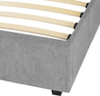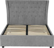 The Camden 4'6 double Bed frame is contemporary and chic modern double bed with a buttoned headboard, solid wooden feet and grey fabric upholstery. The sturdy sprung slatted base provides additional comfort, ensuring you get a good night’s sleep.