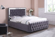 The Dakota bedframe is covered in a dark-grey velvet material. This modern bed has button-back detail on both the headboard and footboard. Moreover, there are also mirrored panels in-built in the headboard, highlighting the unique nature of this bed, giving it a chic and contemporary design. The Dakota grey bed stands on four solid black feet, offering great support.