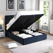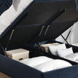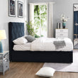 The Dublin Gas-Lift velvet bed features a luxurious fabric and an eye-catching diamond effect on the headboard for a striking look. Sitting on four metallic feet, this navy bed showcases a contemporary aesthetic. Users can take advantage of the bed's inner storage capacity with a simple pull of the handle located at the footboard to activate the Gas-Lift mechanism.