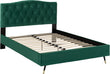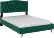The Freya Double Bed is a luxurious addition to your home. Upholstered in an inviting green velvet fabric, this bed is enhanced with a chic buttoned headboard, gold-tipped legs, and sprung slats for optimal comfort and support. Ideal for modern bedrooms, the Freya adds a touch of style.