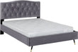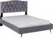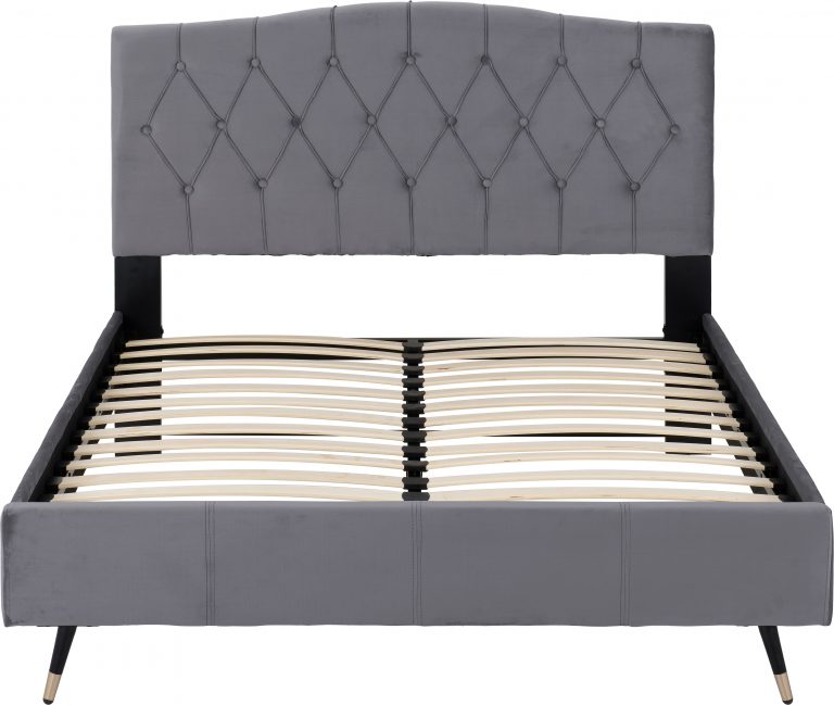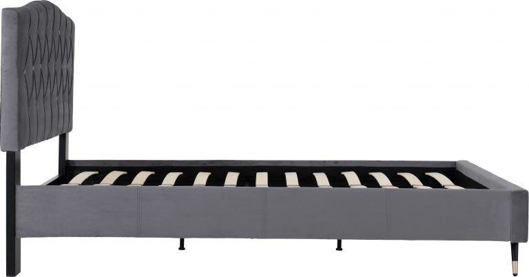 Experience comfort and luxury with the Freya 4'6" Double Bed. Luxurious grey velvet fabric upholstery makes a statement of elegant comfort. The adjustable headboard lets you choose the perfect angle for reading or watching TV. With its opulent design, this bed will be the centerpiece of any bedroom.
