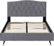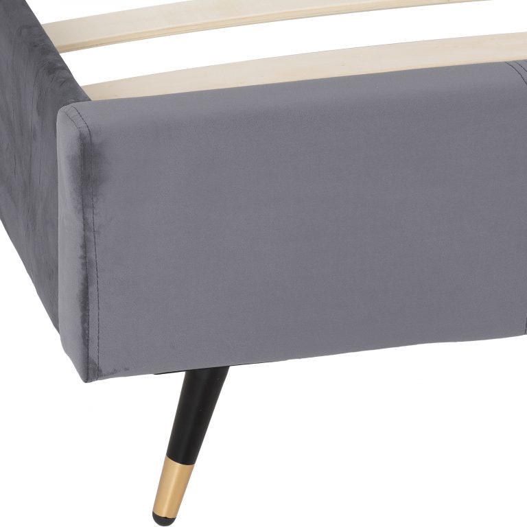 Velvet Fabric, Foam, Plywood, Pine Headboard Legs, Metal Frame, Laminated Sprung Slats, Plastic Slat Caps, Metal Feet, Non-woven