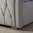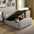 The Kingston Gas-Lift velvet bed is covered in a luxury fabric. The grooved headboard and footboard both have button-back detail which really emphasise the unique character of this bed, giving it an eye-catching quality. This silver bed sits on four metallic feet, giving the bedframe a modern appearance. The Kingston Gas-Lift bed offers excellent inner storage. To avail of the Gas-Lift feature, users simply pull the handle located at the footboard upwards and the mechanism will open easily.