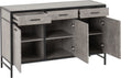 Our Athens Sideboard has a concrete effect finish with black colouring. Crafted from MDF and MDF drawer base, the sideboard is supported by a metal frame and metal handles. It also features adjustable shelves that can be adjusted by 65mm to ensure the perfect storage solution for your space.