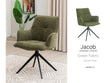 The Jacob Fabric Dining Chair Set of 2 offers a modern and versatile seating option for contemporary dining spaces. Upholstered in soft fabric and supported by a sleek metal leg design, these dining chairs combine comfort with a clean, refined look. The swivel seat adds everyday practicality, making them ideal for both dining rooms and kitchen dining areas.