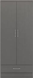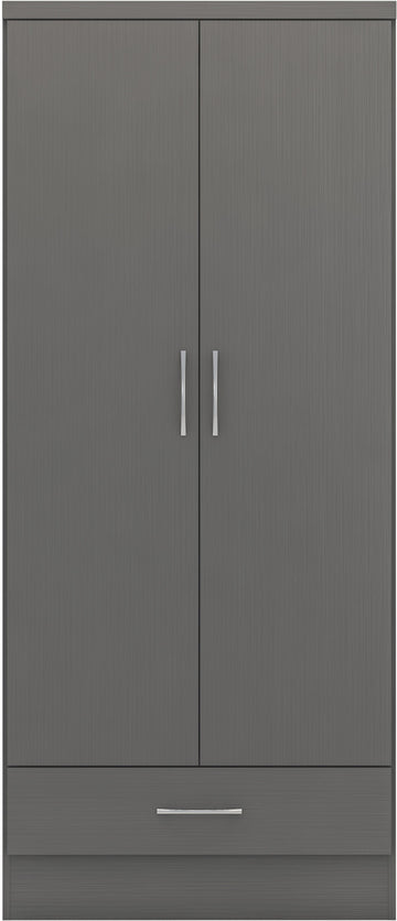 Nevada 2 Door 1 Drawer Wardrobe - 3D Effect Grey