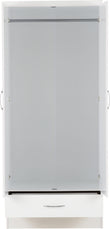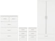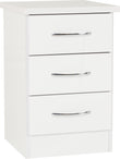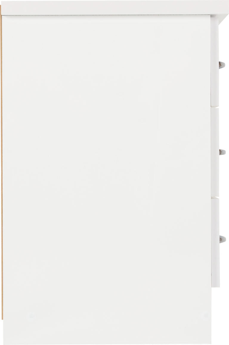 - COMPOSITE BOARD, 3D PAINT EFFECT, PLASTIC VENEER, METAL HANDLE, METAL HINGES, METAL DRAWER RUNNERS, PLASTIC FEET