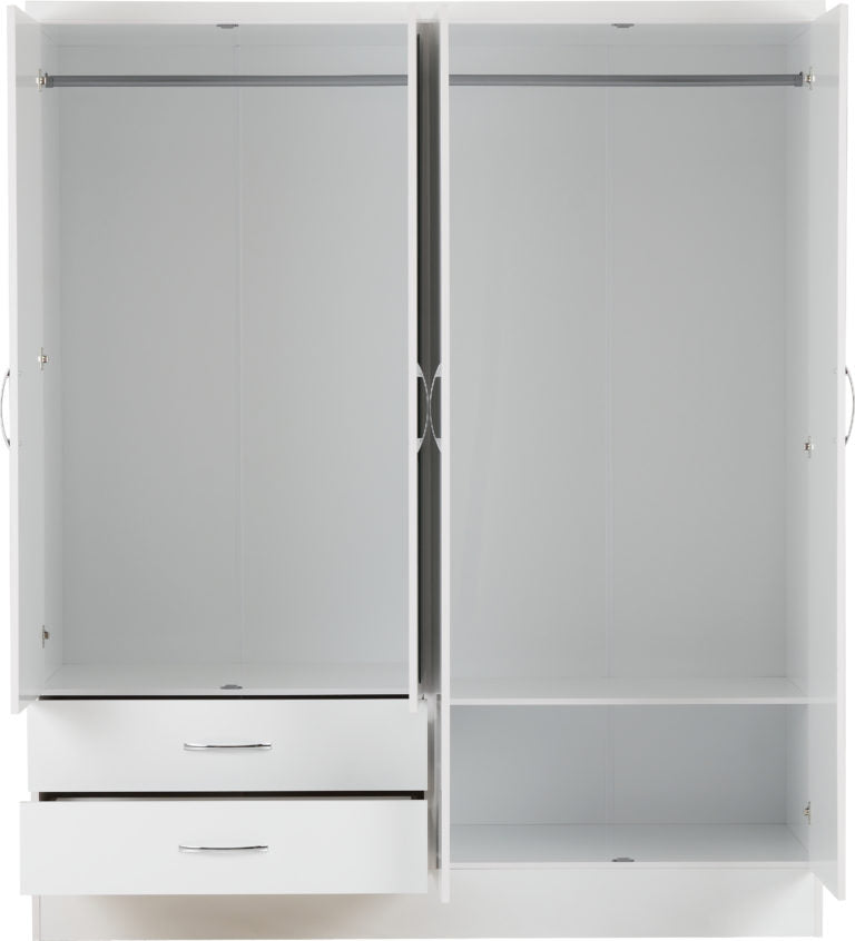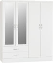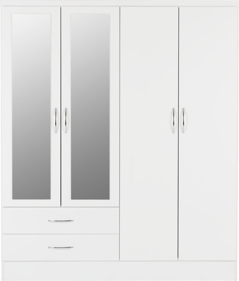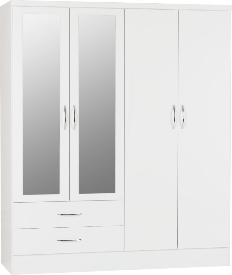 Nevada 4 Door 2 Drawer Mirrored Wardrobe Bedroom Set - White Gloss