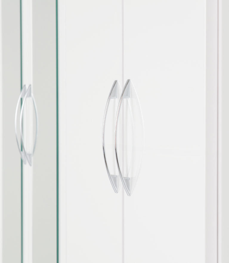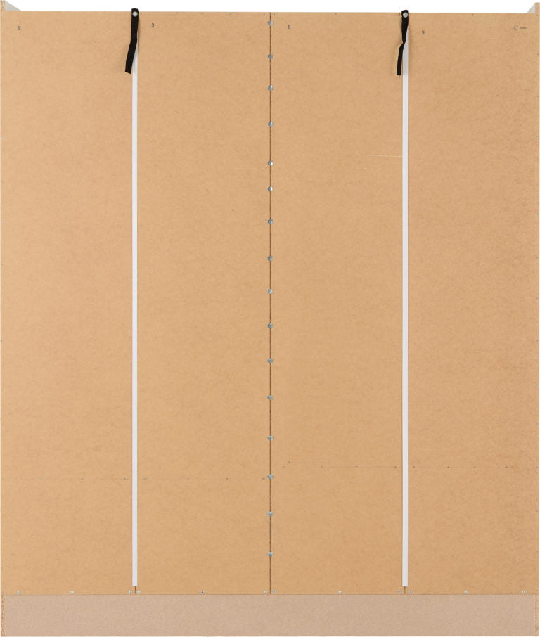 Composite Board, Plastic Veneer, MDF Back Panel, Metal Handle, Metal Hinges, Metal Drawer Runners, Metal Hanging Rail, Plastic Feet, Mirrored Glass