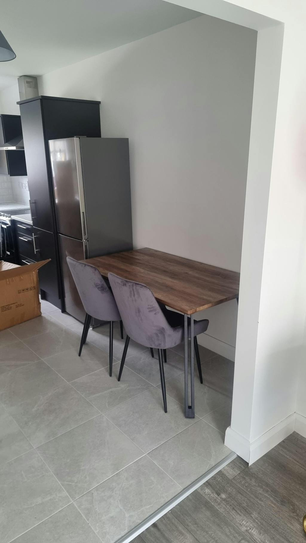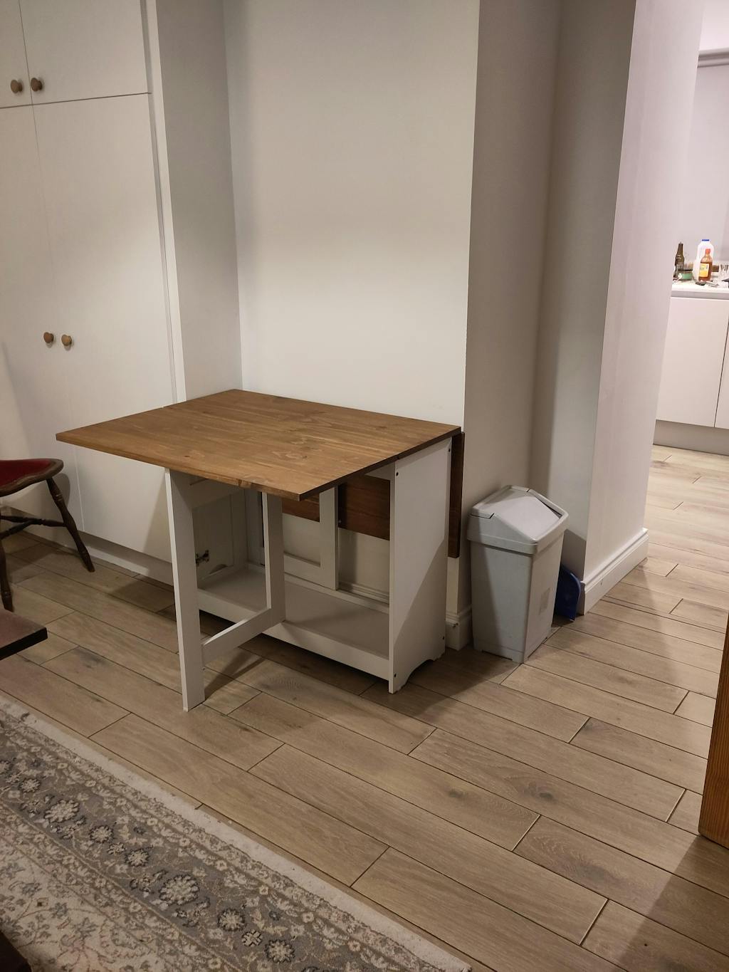 I'm very happy with my new table. There was quite a bit of assembly: it's five pieces. But it's a solid design with decent instructions. Be sure not to over-tighten the screws fixing the seat to the chair frames. Also the chairs are a tight fit to pack away - hardly a surprise. But looks very smart and saves a load of space.