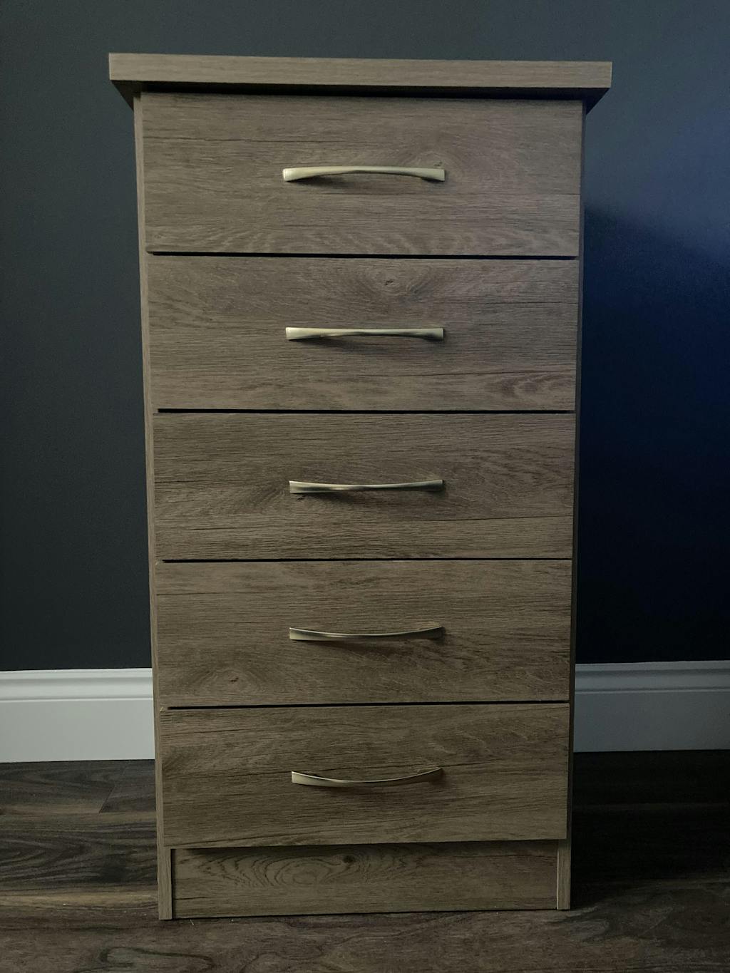 Recently bought a Nevada 5 Drawer Narrow Chest. Very satisfied with the product! Great quality and materials, an easy build guide and it came with all necessary materials and more! (Extra nails, boards etc.) Overall a great price and purchase!