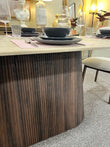 The Athens 180cm Dining Table makes a bold statement with its striking blend of textures and finishes. Featuring a stunning travertine-style top, it offers a natural stone look with modern durability, creating a refined surface perfect for everyday dining or entertaining guests. The contrasting textured base adds depth and character, providing both stability and a contemporary edge. Designed to seat up to 6–8 people comfortably, the Athens table is as practical as it is stylish, making it the perfect centrepiece for any dining room.