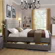 The Las Vegas modern bed is available in King and Super King sizes and is covered in a luxurious linen fabric. The four drawers at the base of this grey bed, two on each side, provide excellent storage. Each storage drawer pulls out easily to reveal storage space, which is ideal for keeping the bedroom tidy. The headboard and footboard of this storage bed have a diamond pattern, as well as an eye-catching button-back detail.