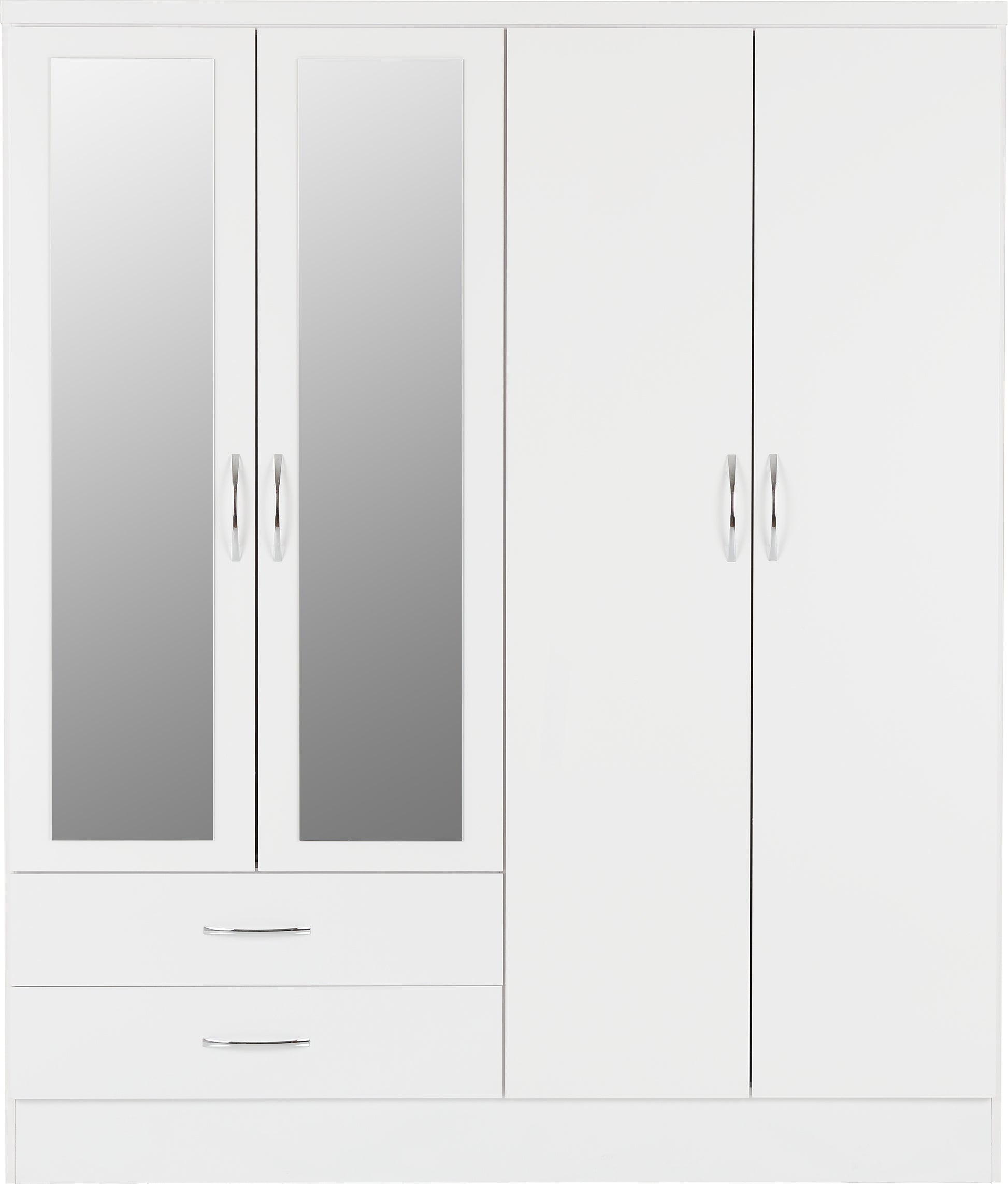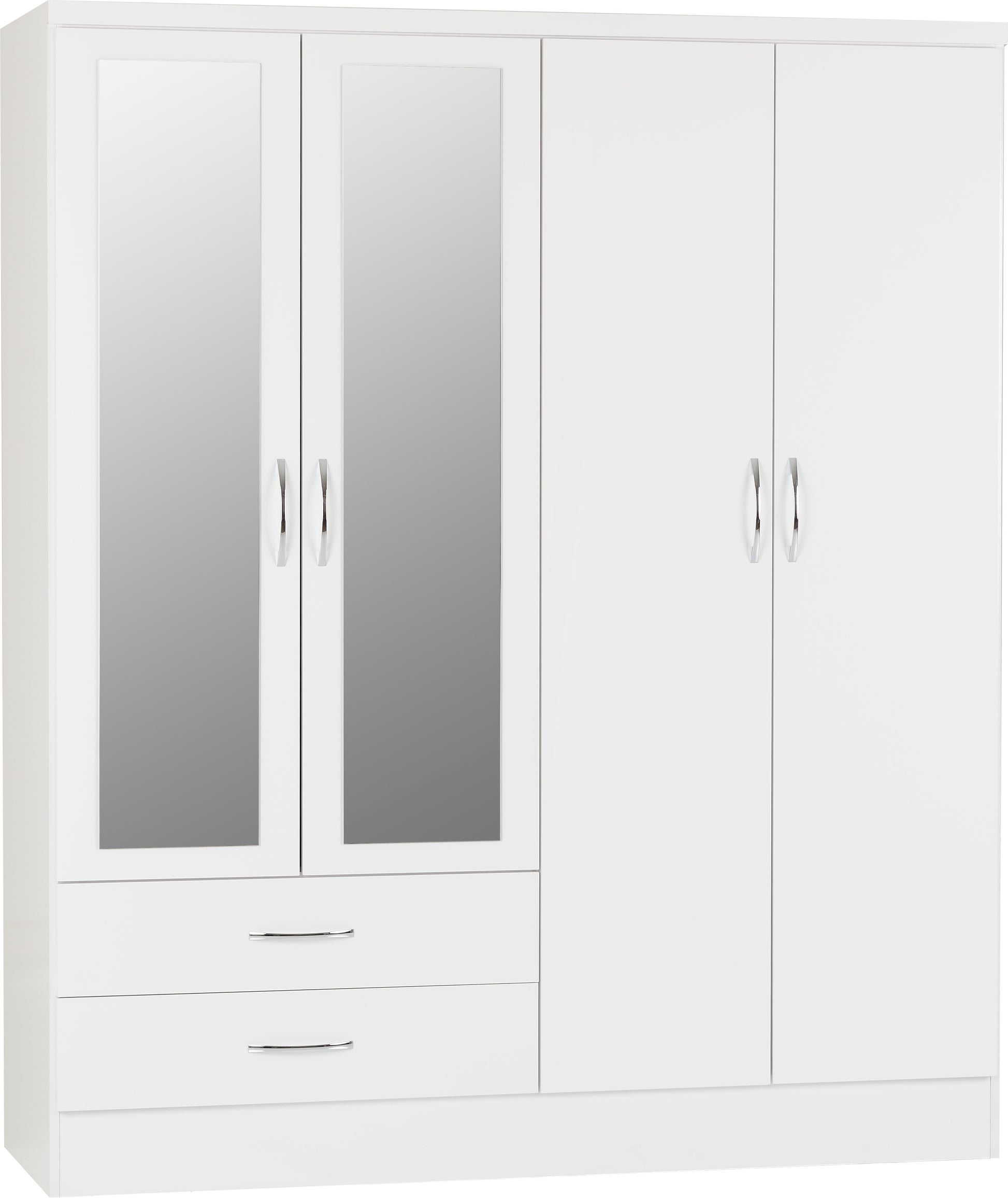 Nevada 4 Door 2 Drawer Mirrored Wardrobe White Gloss