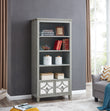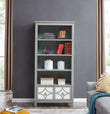 The Russell Bookcase is a beautiful blend of practical storage and elegant design, making it an ideal addition to living rooms, home offices, or dining areas. Finished in a grey distressed painted finish, it exudes vintage charm, while the fretwork detailing frames antique-aged glass panels to create a truly distinctive look. The bookcase features four open shelves for displaying books, ornaments, or decorative pieces, and two spacious storage drawers with soft close doors for keeping essentials neatly tucked away. Chic knocker-style handles complete the design, adding a touch of traditional sophistication. Built with high-quality craftsmanship, this piece is designed to last while enhancing your home décor.